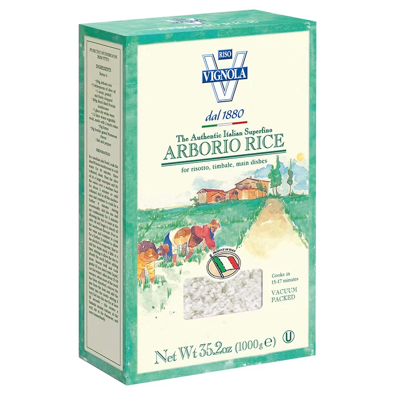Arborio is a rice variety whose large and pearled grains release abundant starch during cooking, assuring an excellent blending of the ingredients. Widely grown in the Po valley, it’s a great classic of the Italian cuisine.